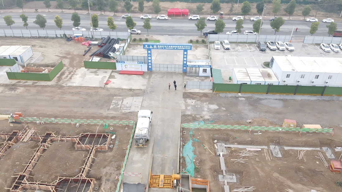 項目現(xiàn)場,工程車來回穿行,施工人員堅守崗位,忙碌在施工一線。工人有序作業(yè),各工種協(xié)調配合,機械聲不絕于耳。管理人員來回巡查指揮現(xiàn)場施工,一派火熱景象。自9月進場施工以來,該項目已完成50%的地基基礎施工、1460米圍墻施工,廠區(qū)道路路基換填AB料完成31800平方米。