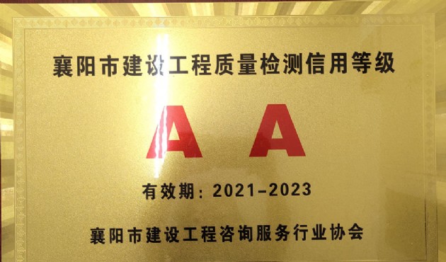 漢江城建正實(shí)檢測(cè)公司榮獲2020年度AA級(jí)信用檢測(cè)機(jī)構(gòu)